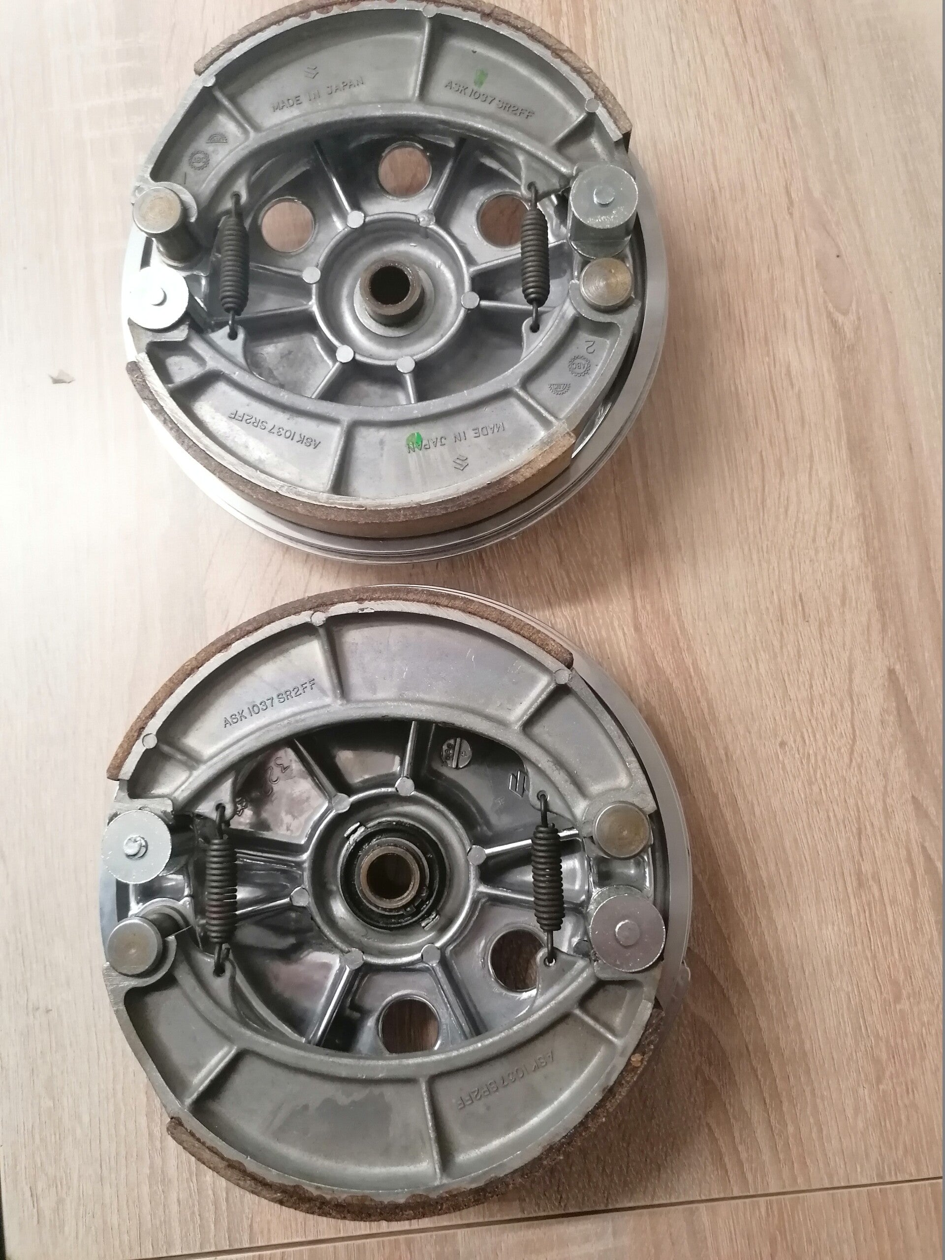 Die Ankerplatten sind Hochglanz poliert und die 4 Bremsbacken, die Sie nicht mehr bekommen, sind neu.